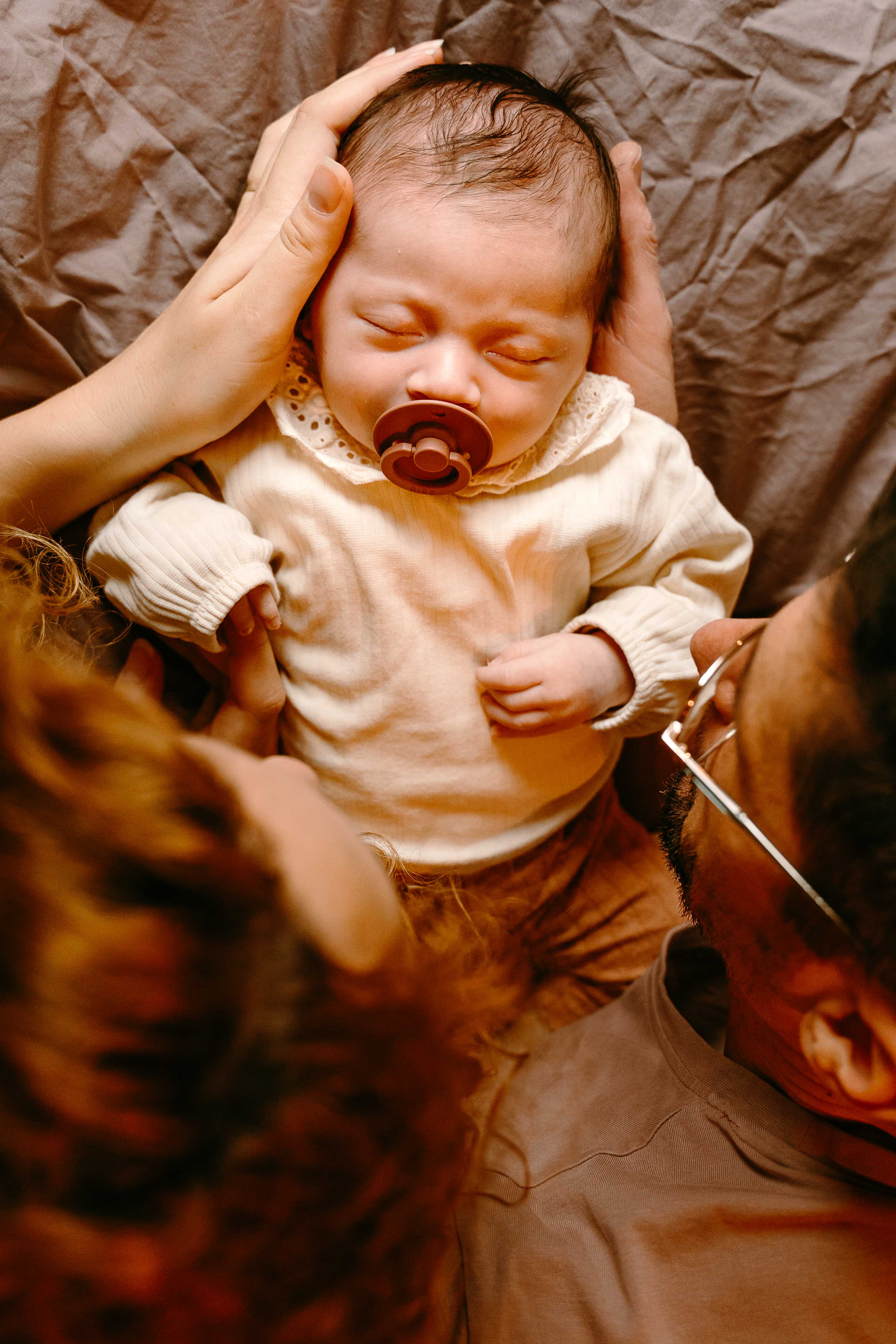Een newbornshoot vindt meestal plaats binnen de eerste 2 tot 6 weken na de geboorte. In deze periode is jullie baby nog klein en zijn jullie volop aan het wennen. We plannen de shoot niet strak op een dag, maar houden ruimte zodat het moment past bij hoe het met jullie gaat.